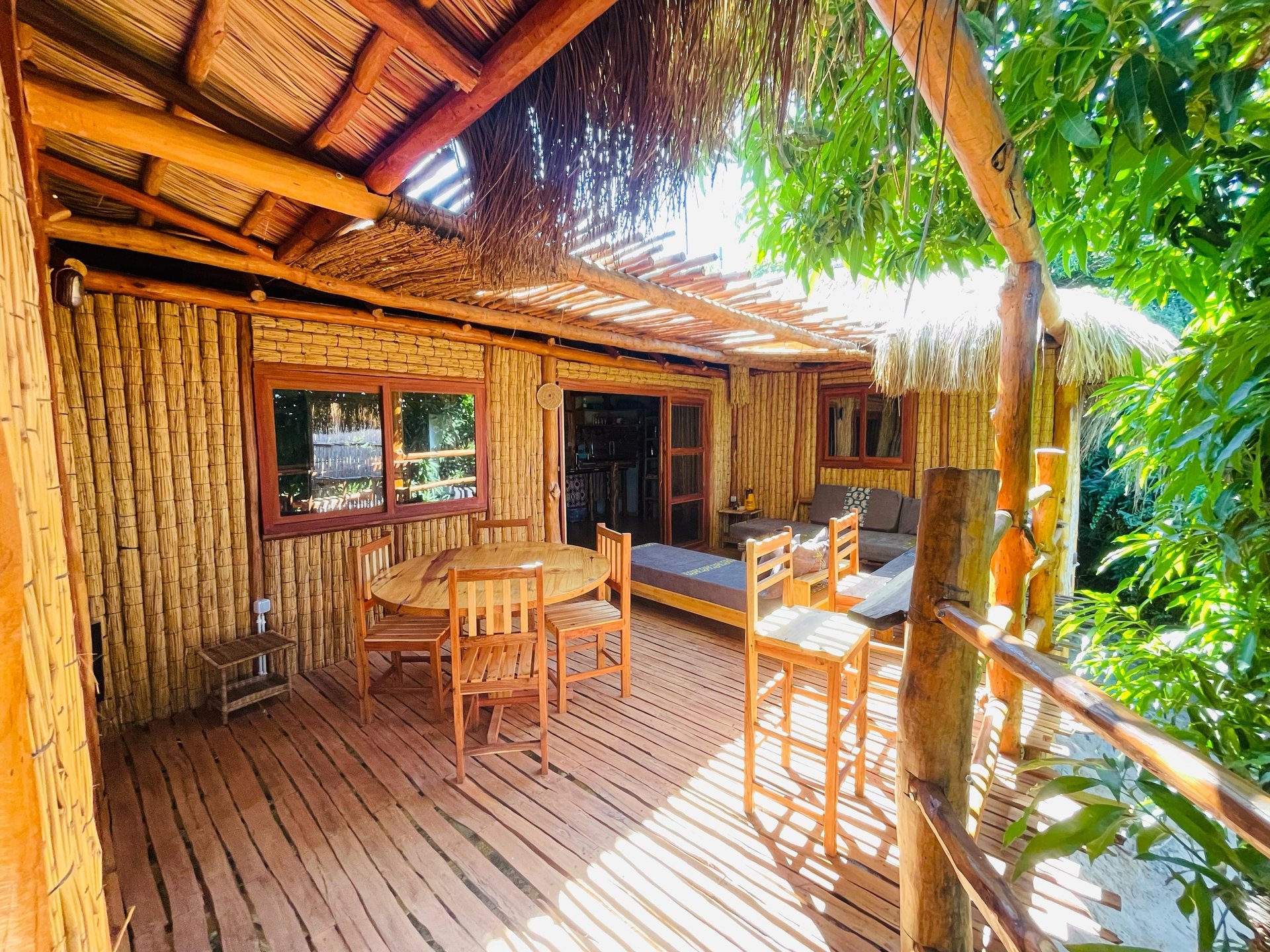 Terrasse spacieuse, les manguiers ont donné le nom à la maison, venant de la langue locale, le Xitsua. Cette petite mangue jaune et très juteuse vous offrira des petits déjeuners excellents, lors de la saison.