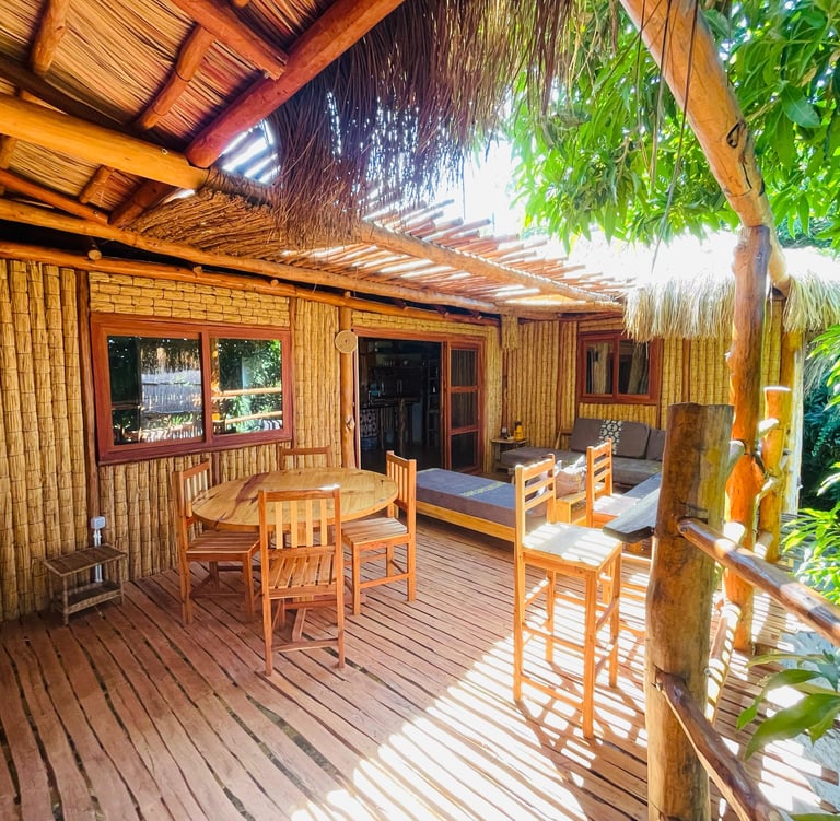 Maisons traditionnelles africaines fabriquées entièrement avec des matériaux locaux, de la fondation aux décorations ! Tout est fait main par notre équipe, en bois et matériaux naturels.