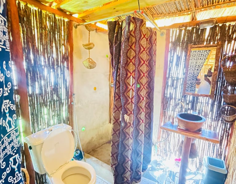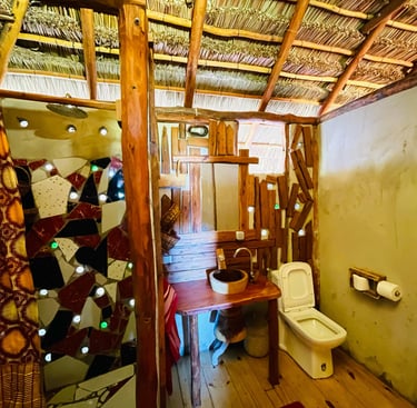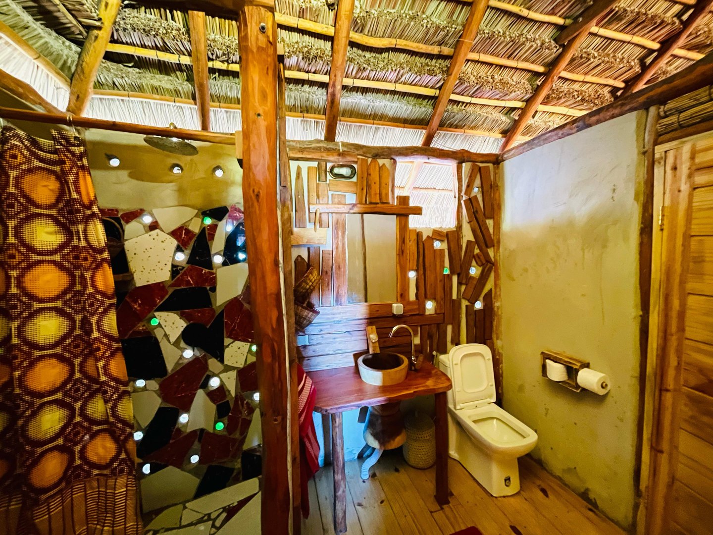 African houses built with locals materials, from the basement to the lights covers ! Everything was built by our team, in wood or natural materials.